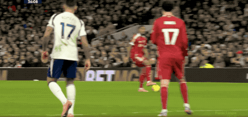 第64分鐘,熱刺差點扳平比分,穆阿尼的傳中越過阿利松的頭頂,擊中橫梁彈了出來。